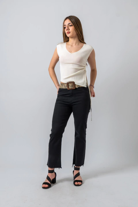 Musculosa de Hilo Irregular con Frunce (OB1MU01): Elegí esta musculosa única que combina estilo y comodidad con su diseño de hilo irregular y detalle de frunce en el frente. Perfecta para un look fresco y moderno, se adapta a cualquier ocasión, desde salidas casuales hasta eventos especiales. Confeccionada con materiales de calidad, destaca por su textura y ajuste favorecedor. ¡Sumá un toque original y sofisticado a tu guardarropa con esta prenda imprescindible!